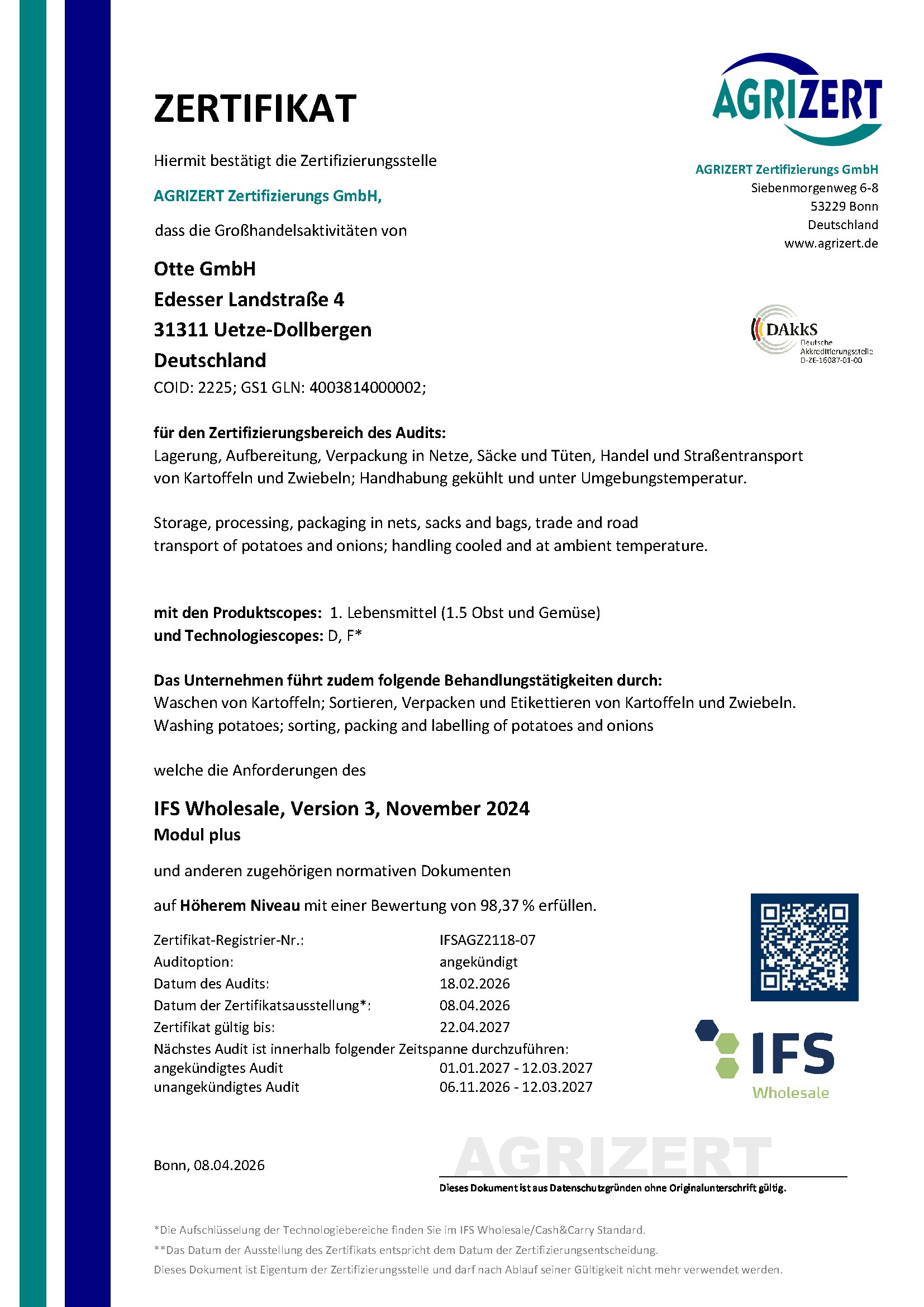 Als zuverlässiger Partner im Lebensmitteleinzelhandel steht die OTTE GmbH für Qualität, Sicherheit und Nachvollziehbarkeit entlang der gesamten Wertschöpfungskette. Von der Auswahl unserer Rohwaren über die Verarbeitung bis hin zur Lieferung – jeder Schritt unterliegt strengen Kontrollen und zertifizierten Prozessen.